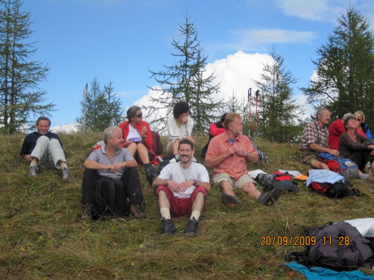 Erstes Ziel: Gruppe rastet auf dem Innergsell