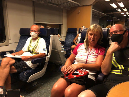 Querformat-Foto vom 20.07.2021 Gruppe mit ihren Tandems (dahinter Schlosshotel Felden?)