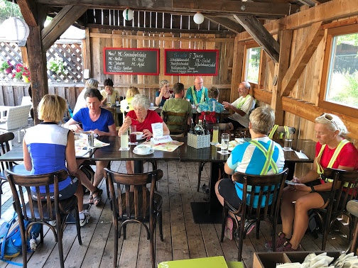 Hochformat-Foto vom 19.07.2021 Gruppe bei Kaffee und Erfrischung