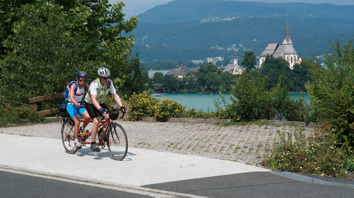 Ein strahlender Sommertag. Vor dem Stiegenaufgang zur malerischen Kirche von Maria Wörth ziehen zehn Tandem-Räder die interessierten Blicke der zahlreichen Touristen auf sich, die per Schiff, mit dem Auto und eben manchmal auch mit dem Fahrrad kommen. Noch interessierter werden die Blicke, als die Fahrer*innen der Räder aus der Kirche kommen und sich zur Weiterfahrt richten: Zehn von ihnen sind offensichtlich blind. Sie werden von ihren Begleiter*innen zu den Rädern geleitet. Man stärkt sich rasch mit einem Müsliriegel, gönnt sich einen Schluck aus der Wasserflasche, tauscht noch Eindrücke aus der Kirche aus, und schon starten die ersten.